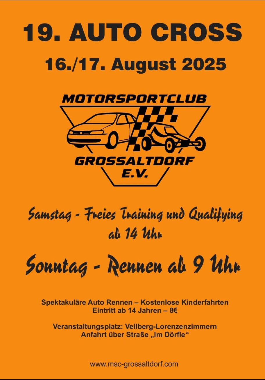 19. Autocross am 16. und 17. August 2025 in Vellberg-Lorenzenzimmer
